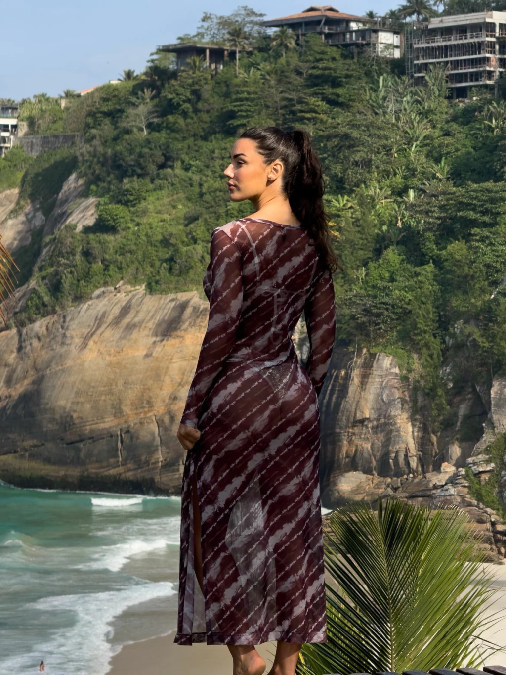 Seu design alongado e fluido, com lascados nas laterais, proporciona um movimento elegante e uma silhueta deslumbrante, enquanto oferece a cobertura ideal sem perder a leveza. A veste perfeita garante que você se sinta confortável e confiante, adaptando-se com graça a diferentes tipos de corpo.